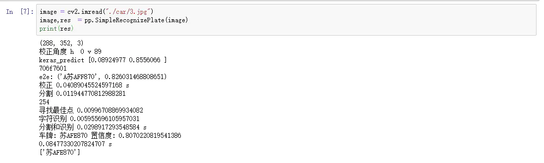 至此,我们成功地使用开源python库进行车牌识别,本次提供的三个样本显示出识别需要质量较高的图像,对于低质量图像或有逆光干扰的时候,会有多个结果供选择,我们可以根据置信度,或提高图像分辨率进行处理与选择。