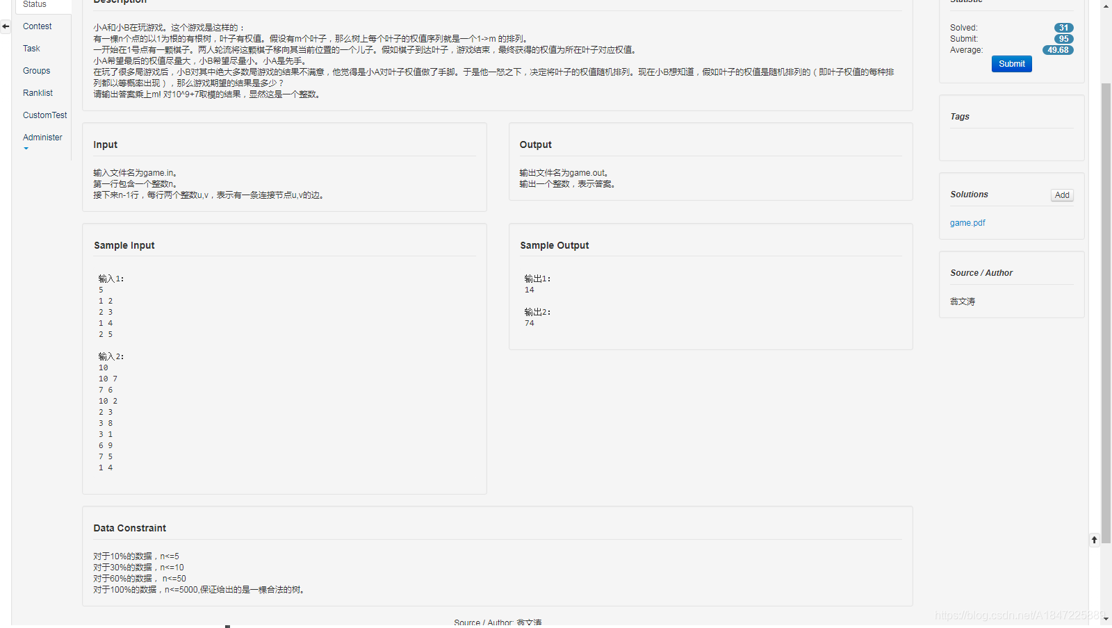 Description 小A和小B在玩游戏.这个游戏是这样的: 有一棵
