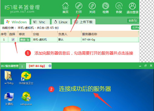 一、首先,用iis7服务器管理工具登录需要下载vnc服务端的服务器,完成下载。