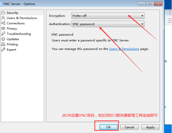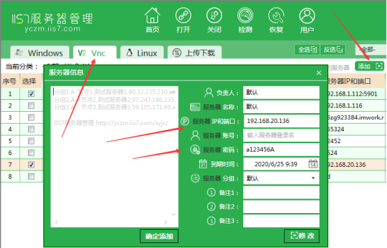 二、用IIS7服务器管理工具连接获得的vnc ip端口及密码信息。