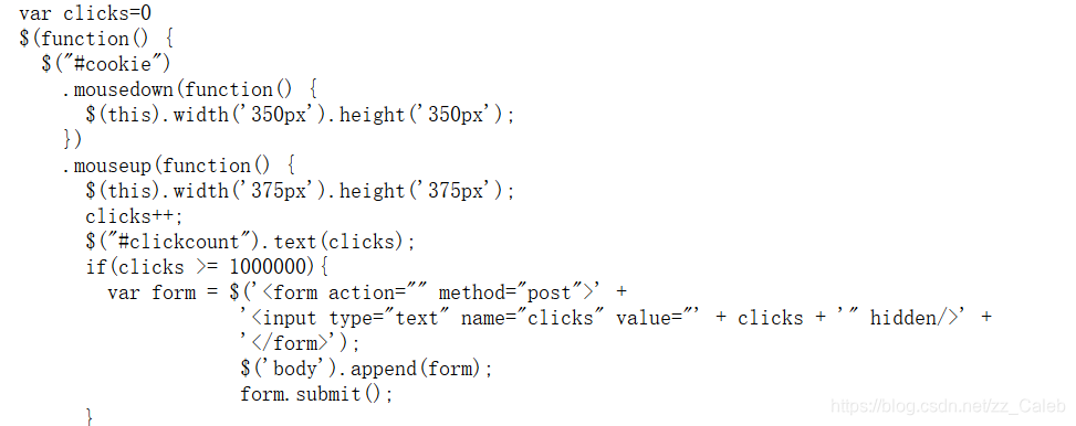 大概就是clicks>=1000000时,输出flag,既然他想要个clicks,我们就给他传个,用hackbar去post:clicks=1000001(可以更大),就拿到flag了。