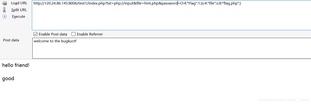 审计一下代码,大概意思就是接受一个hello的值赋给a,然后再输出a,上面有提示flag.php,可能flag在这个文件中。