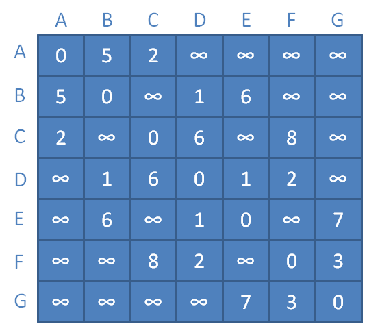 对于寻找图的所有顶点之间距离的问题,初始状态就是顶点之间的直接距离,也就是邻接矩阵。