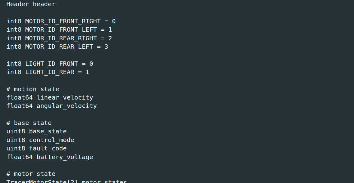 在自定义消息中添加 Header header 即可。(可以看一下松灵机器人的官方ROS包里的源代码,就像下面这样),个人觉得看官方源码确实收获不小。