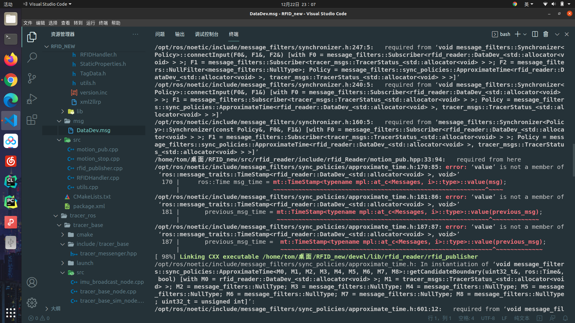 /opt/ros/noetic/include/message_filters/sync_policies/approximate_time.h:187:87: error: ‘value’ is not a member of ‘ros::message_traits::TimeStamp<rfid_reader::DataDev_<std::allocator<void> >, void>’
