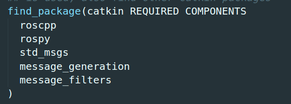 在Cmakelists.txt中的find_package添加message_filters
