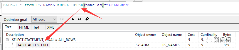 如果加上UPPER就会走全表扫描,代价是5,显然更花费时间。