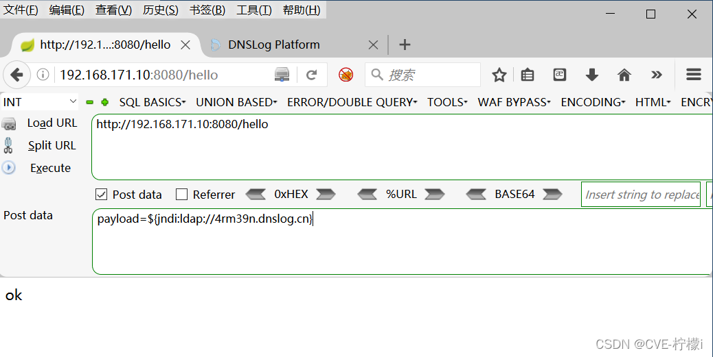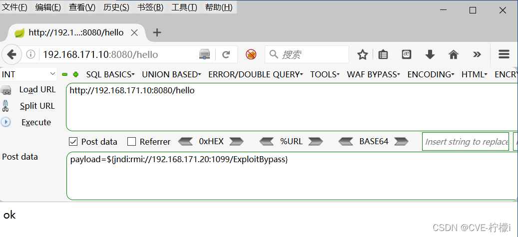 打开浏览器,用POST传递payload