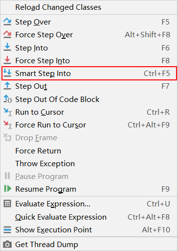 想想,一行代码里有好几个方法,怎么只选择某一个方法进入。之前提到过使用Step Into (F6) 或者 Force Step Into (Ctrl + F5)进入到方法内部,但这两个操作会根据方法调用顺序依次进入,这比较麻烦。