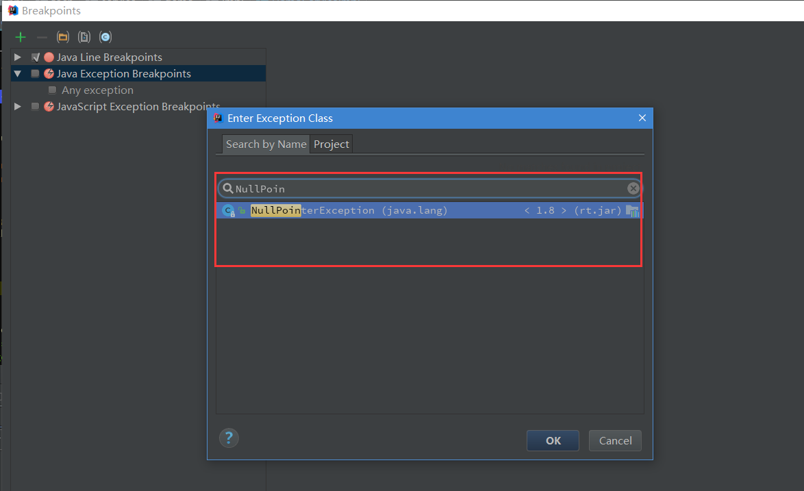 如图6.7,之后可以在Java Exception Breakpoints里看到添加的异常断点。
