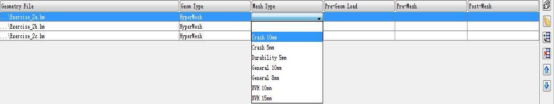 所有在上一步中导入的零部件几何模型都会出现在几何文件列表(Geometry File)中。同一零部件模型可重复添加到几何文件列表中,使用不同的网格类型划分网格。