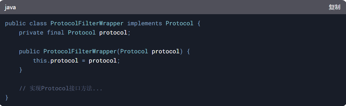 Dubbo 支持自动包装扩展点实现,类似AOP的概念。当扩展点实现类的构造函数包含扩展点接口类型参数时,Dubbo会自动将其识别为Wrapper类