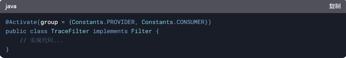 可以通过URL参数指定激活哪些扩展:dubbo://service?filter=trace,monitor