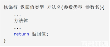 - Java的方法类似于其他语言的函数,是一段用来完成特定功能的代码片段,一般情况下,定义一个方法包含以下的语法: