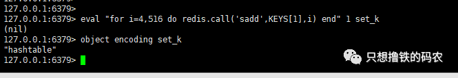 //使用eval命令执行lua脚本,往集合set_k添加514个数据