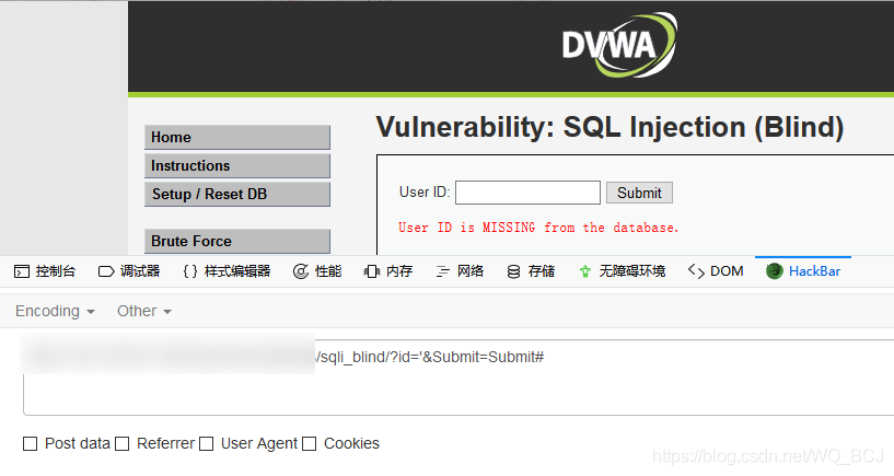 1.初级篇 Low.php 加单引号提交 http://localhost/DVWA-master/vulnerabilities/sqli_blind/?id=1'&Submit=Submi ...