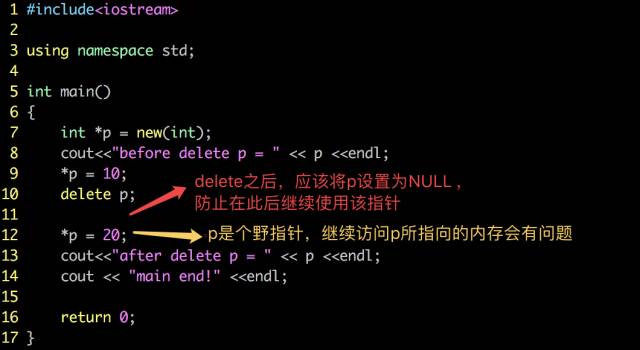 - 指针p被free或者delete之后,没有置为NULL,让人误以为p是个合法的指针,事实上free或delete只是把指针所指的内存给释放掉,但是指针的值还是这块内存的地址,只不过这块内存已经被回收了不能被该进程再使用