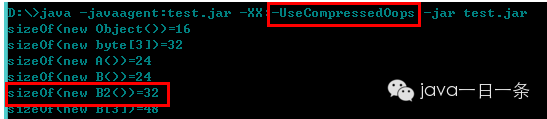 对象占用的内存大小收到VM参数UseCompressedOops的影响。