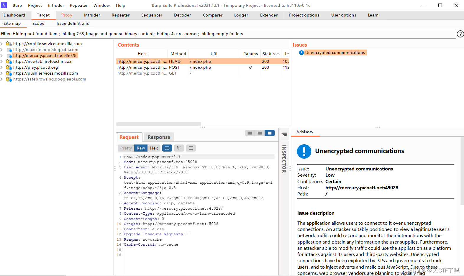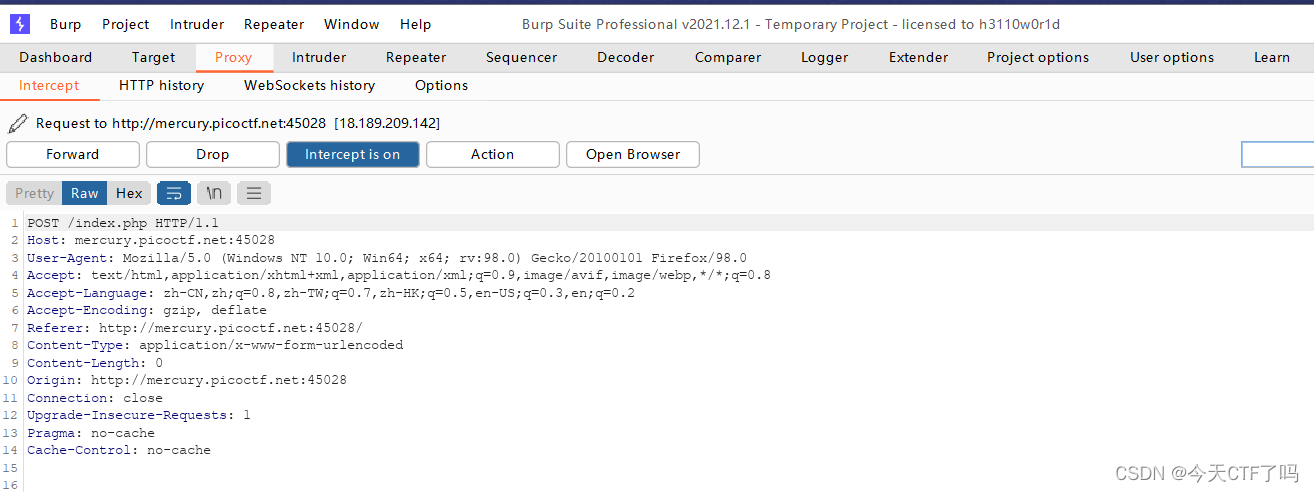 curl命令:curl -X HEAD -i http://mercury.picoctf.net:45028