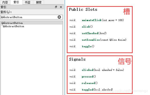 如果该类没有找到信号描述,那么就找它的父类看看,如 QPushButton