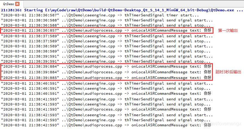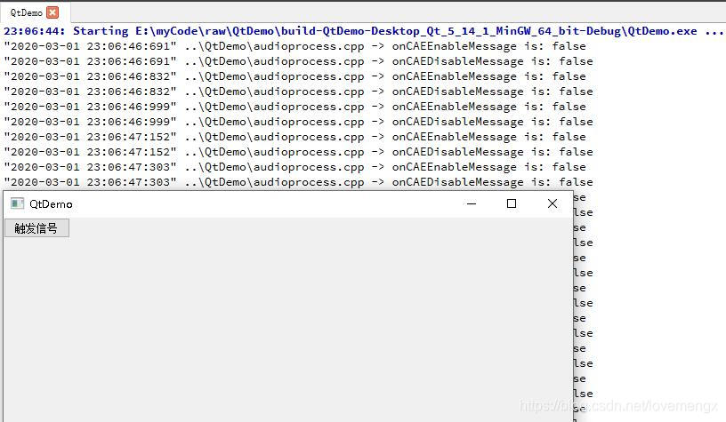 从输出的 “send signal start ” 和 “send signal end” 时间可以发现,QT 的信号槽是异步机制,不是直接的函数回调方式。