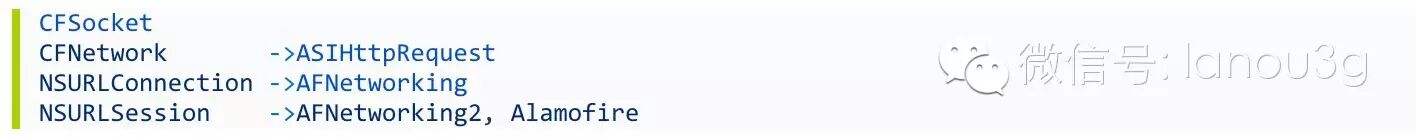 iOS 中,关于网络请求的接口自下至上有如下几层:
