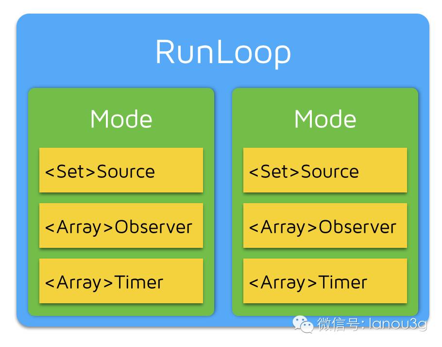 这两个 Mode 都已经被标记为"Common"属性。DefaultMode 是 App 平时所处的状态,TrackingRunLoopMode 是追踪 ScrollView 滑动时的状态。