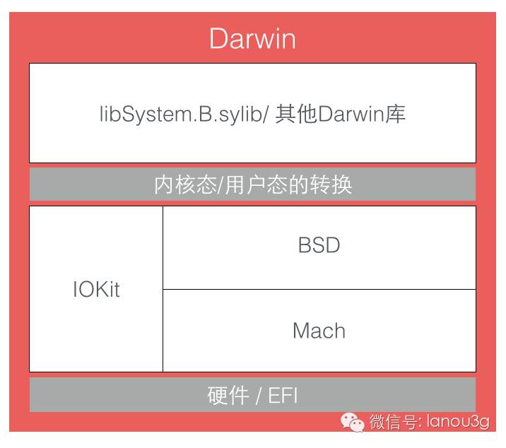 从上面代码可以看到,RunLoop 的核心是基于 mach port 的,其进入休眠时调用的函数是 mach_msg()。为了解释这个逻辑,下面稍微介绍一下 OSX/iOS 的系统架构。
