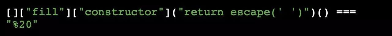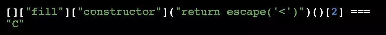 如果我们在「 escape 」函数中传入「 < 」字符,我们会得到「 %3C 」。哈哈,这样我们又得到了字母「 C 」,如果你想拼出我们缺少的其他单词,那么「 C 」字母是非常必要的。