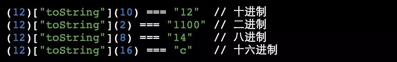好的,我现在告诉你,「Number」类型的「toString」方法有一个称为「radix」(基数)的秘密的论点。它规定一个数值在转换为字符串之前先进行基数换算,像这样: