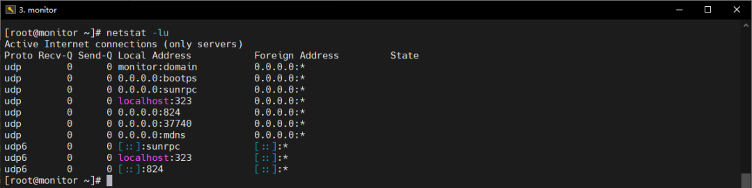 [root@monitor ~]# netstat -lu