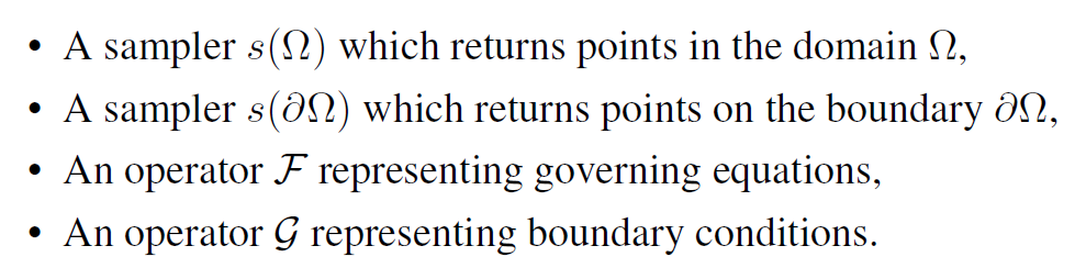 大多数 PDE 都可以通过它们的域、边界、表示控制方程的运算符和表示边界条件的运算符来完全指定。