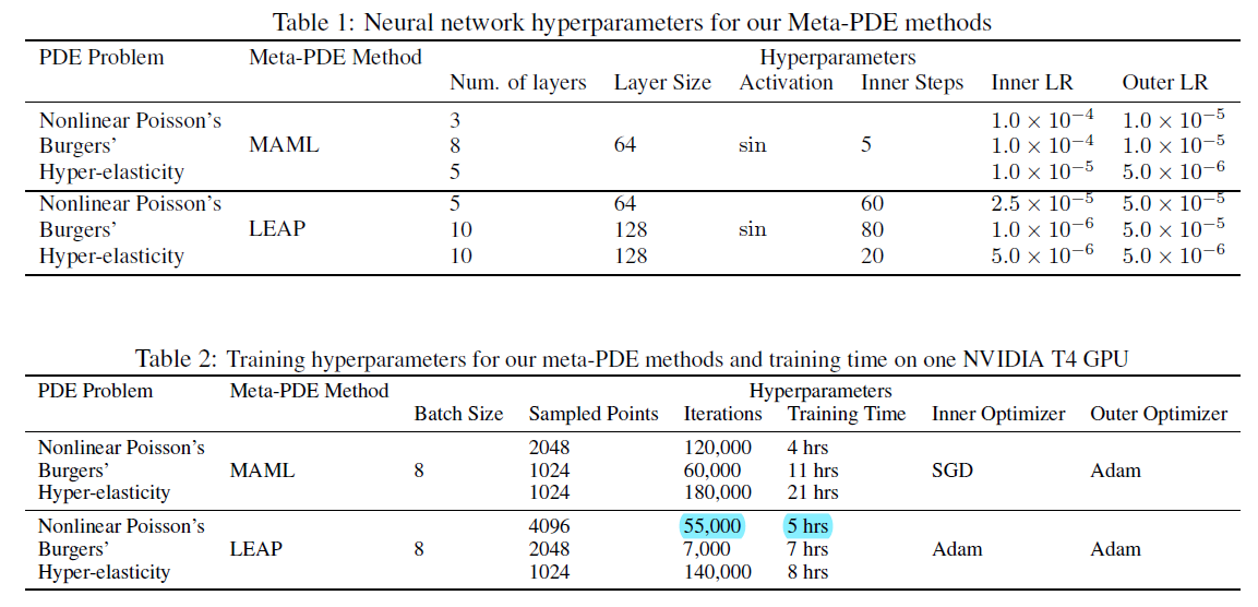 问题的分布由偏微分方程的不同参数化组成,例如不同的边界条件、初始条件、控制方程中的系数,甚至偏微分方程的问题域。这很像以前看过的一篇通过迁移学习加速PINN训练点,那一个是预训练好后,微调最后一个线性层。