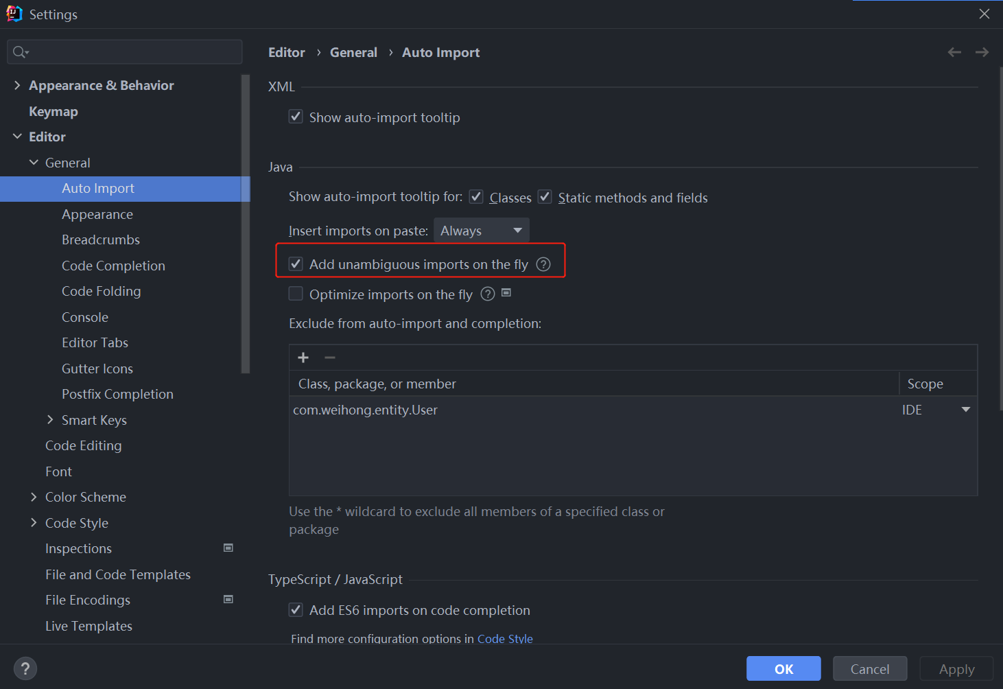 9、IDEA复制代码后,需要导入多个包,开启自动导包的设置。