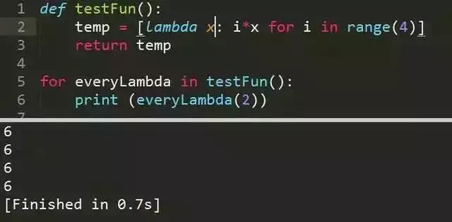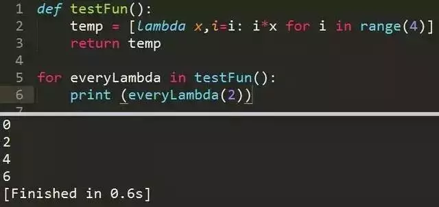 最后发现原因竟是:Python 的闭包的后期绑定导致的 late binding,这意味着在闭包中的变量是在内部函数被调用的时候被查找。