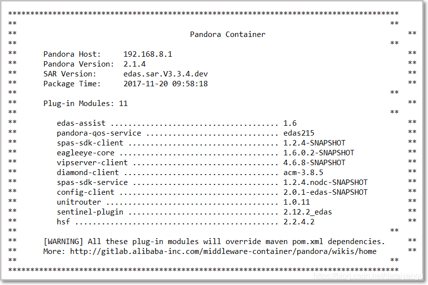 说明:d:\work\tomcat\deploy\taobao-hsf.sar 需要替换为在本地安装 Pandora 的实际路径。