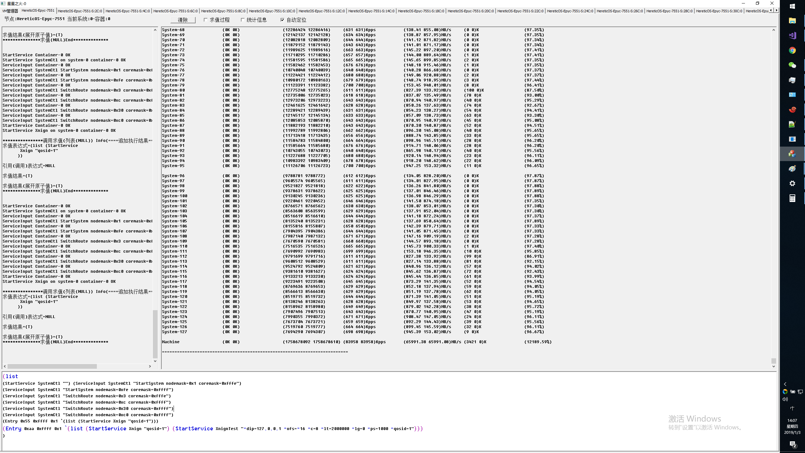 PBFT应用潜伏期较大,因此对IO延迟以及线程实时响应能力,错误处理能力要求极高,与Xnign压测不同的是PBFT需要所有节点全连接,最慢的节点以及最慢的通讯路径将拖累系统总体IO性能,并可能造成超时停机,因此我们用PBFT可以来模拟对分布式事务以及分布式锁等性能能依赖较高的应用性能测试,主要测试有4将军,61将军,241将军,4096将军,最后我们压测了极限8191将军,他将创建1.2亿TCP RPC链接(2*8191*8191),对应4.8亿异数OS工作线程.