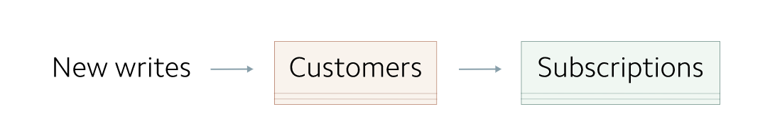 目前,所有的读操作在 Customers 表上进行,需要将这些操作转移到 Subscriptions 表上。