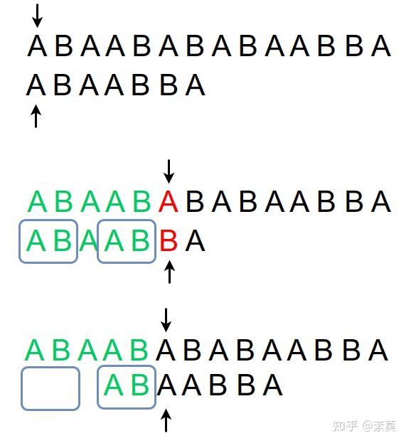 首先思考我们在暴力匹配模式串时的思路: