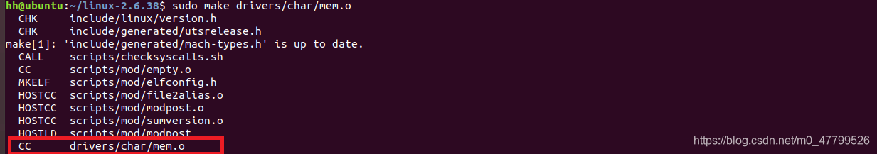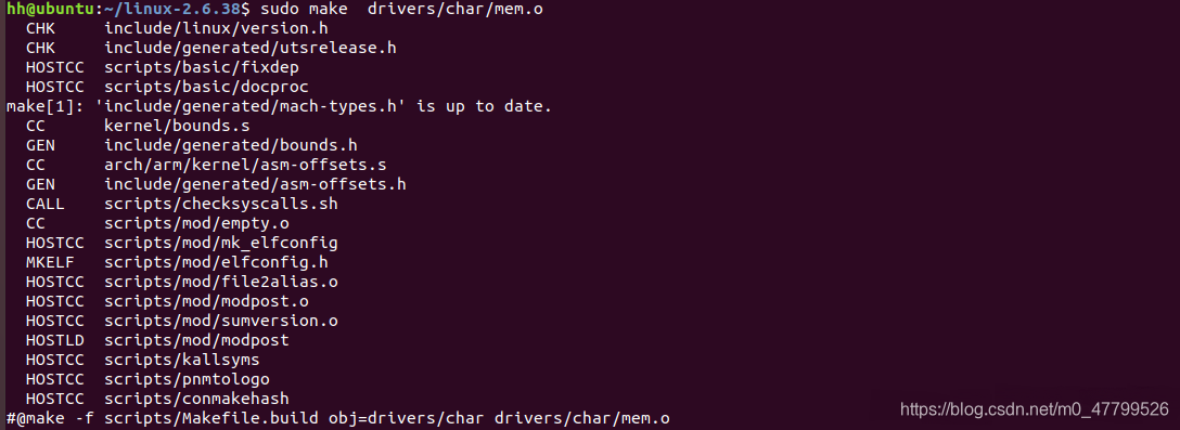 从打印的命令来看,生成drivers/char/mem.o这个目标文件是重新又调用了一次make,而这次使用的是script/Makefile.build这个规则文件,传入的参数是drivers/char,目标还是drivers/char/mem.o。