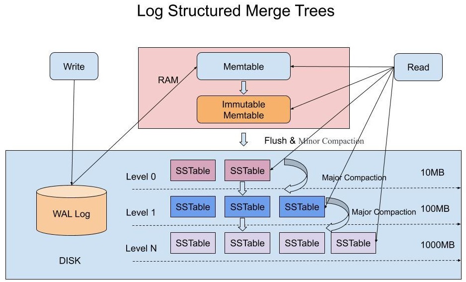 LSM-Tree全称是Log Structured Merge Tree,是一种分层、有序、面向磁盘的数据结构,其核心思想是充分了利用了磁盘批量的顺序写要远比随机写性能高出很多。这种结构的写入,全部都是以Append的模式追加,不存在删除和修改,但是是以牺牲部分读取性能为代价尤其是随机读,通常适合于写多读少的场景。