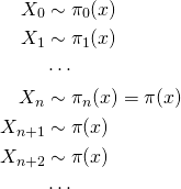 由马氏链收敛的定理, 概率分布将收敛到平稳分布