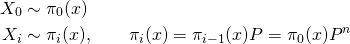 从初始概率分布 出发,我们在马氏链上做状态转移,记