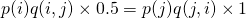于是我们可以如下构造平面上任意两点之间的转移概率矩阵Q
