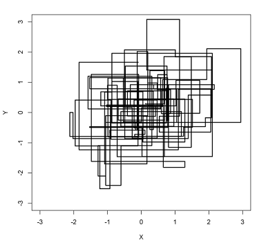以上采样过程中,如图所示,马氏链的转移只是轮换的沿着坐标轴 轴和