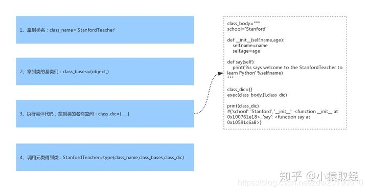 如果一切皆为对象,那么类StanfordTeacher本质也是一个对象,既然所有的对象都是调用类得到的,那么StanfordTeacher必然也是调用了一个类得到的,这个类称为元类。