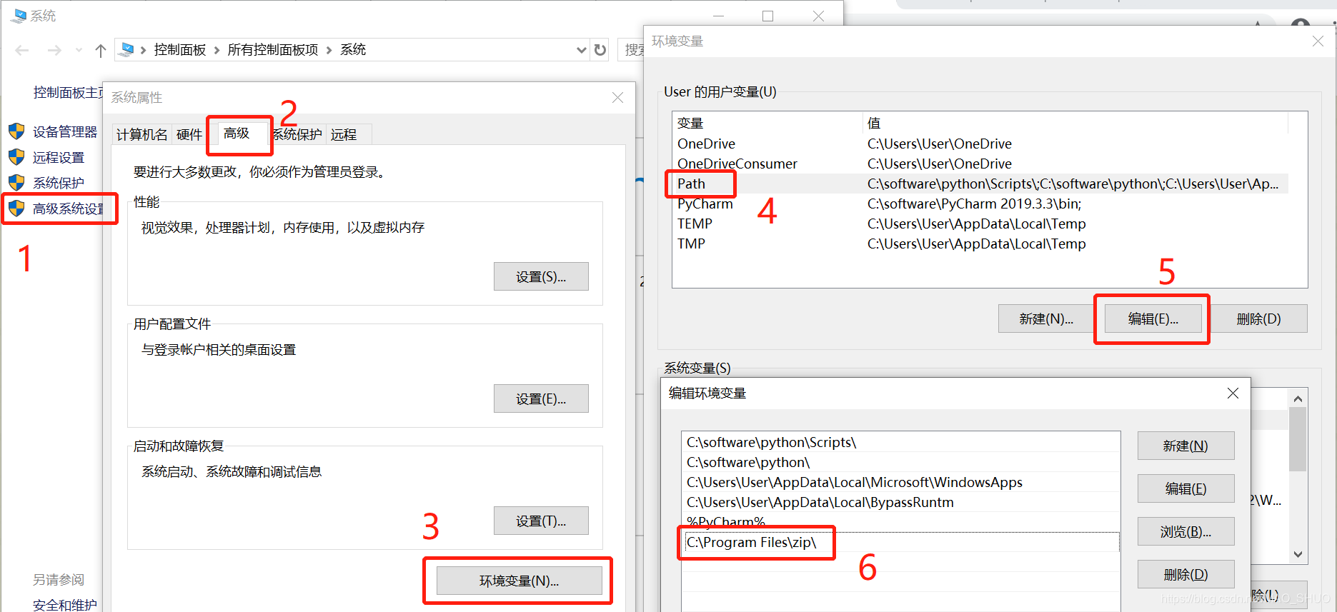 第二步 调整电脑环境变量 添加zip执行程序所在的路径