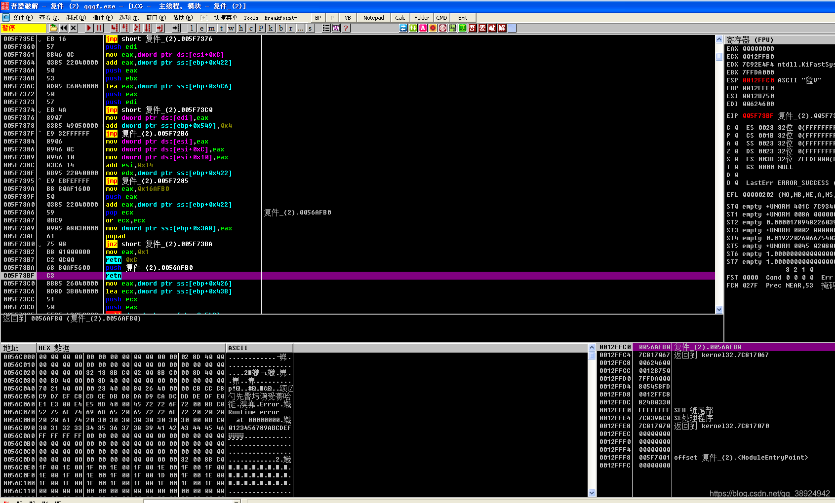 之后过了最后一个retn,就到了OEP
