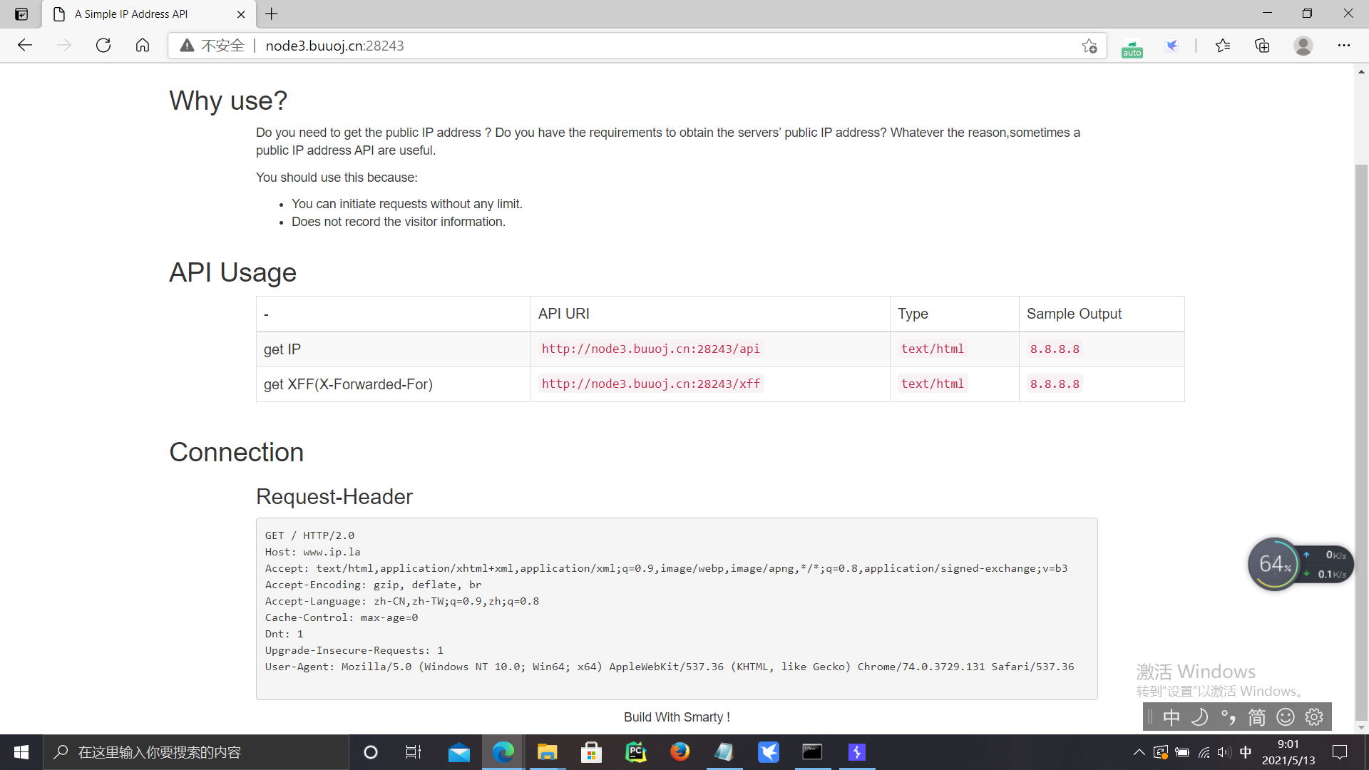 在页面右上角给出了IP,所以可以通过这里进行注入。